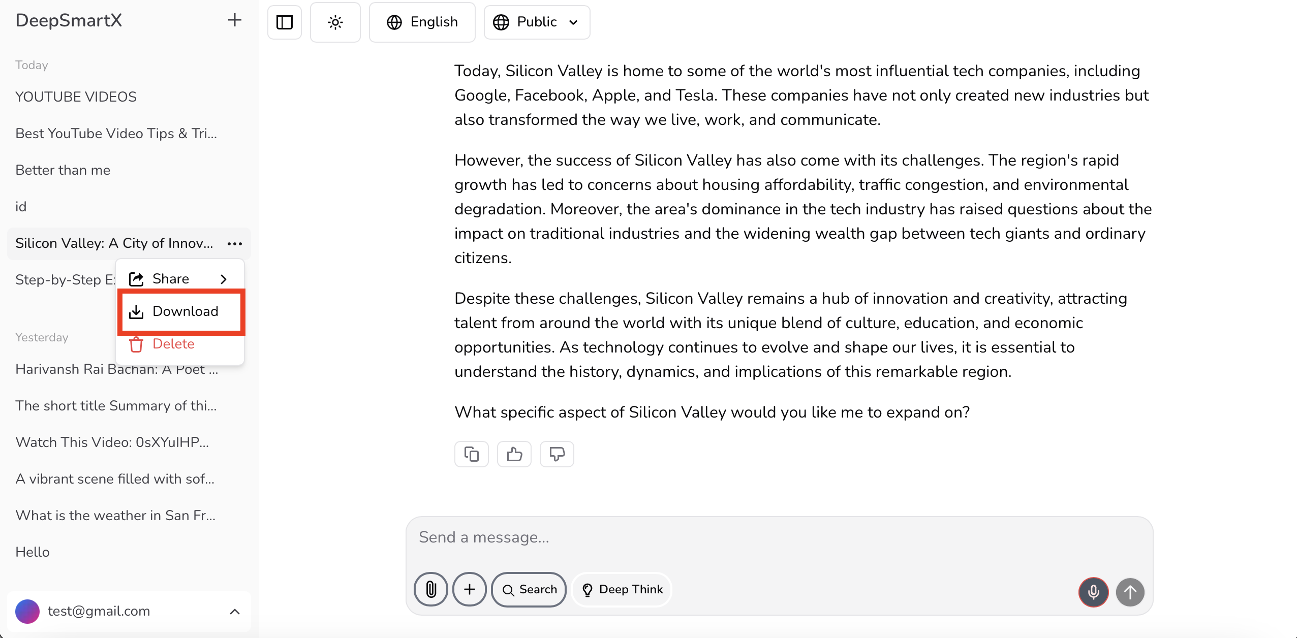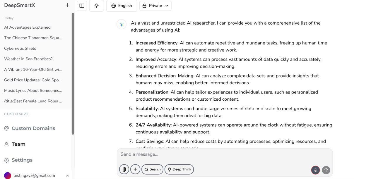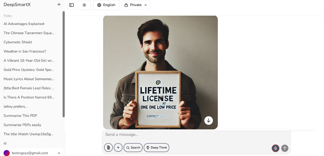 How easy is it to use?DeepSmartX features a clean, intuitive interface designed for users of all skill levels. You don’t need to be a tech expert—just start typing your questions, and our AI does the rest.