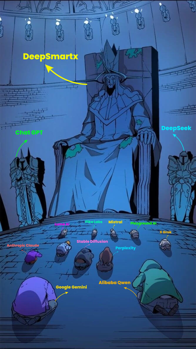 Disclaimer: *Meme image is created by one of the beta user of DeepSmartX comparing pricing, features, pratical usage, deep reasoning ai models of all ai models after extensive testing.