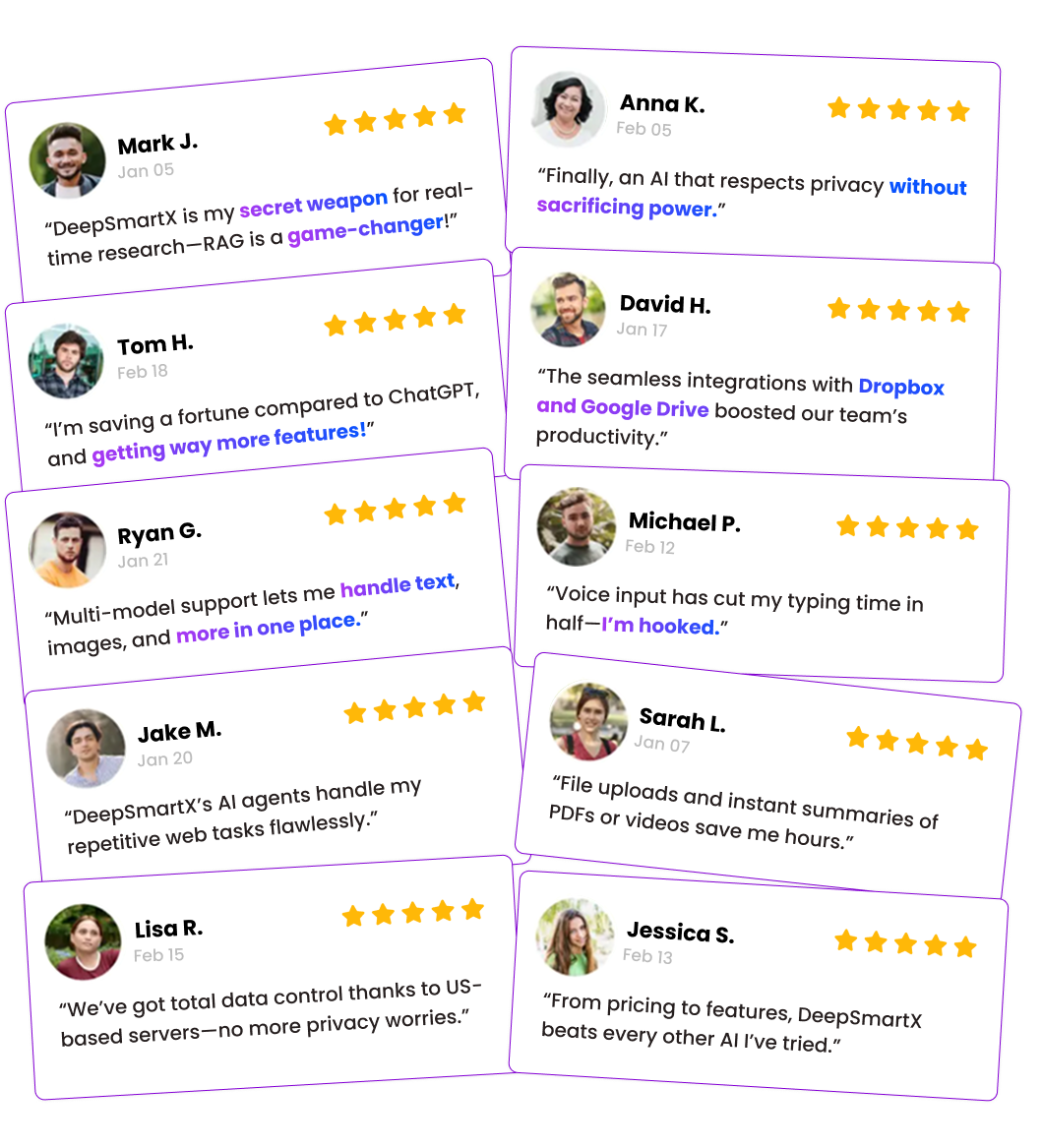 Does DeepSmartX integrate with other apps?Definitely. We provide seamless integrations with popular tools such as Gmail, Google Drive, Dropbox, and Zapier, enabling you to pull data or automate tasks without leaving the platform.